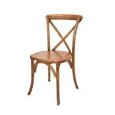 Real Fruitwood Wood Cross Back Chair, Rustic Dark Color farmhouse style chair. Includes burlap cushion